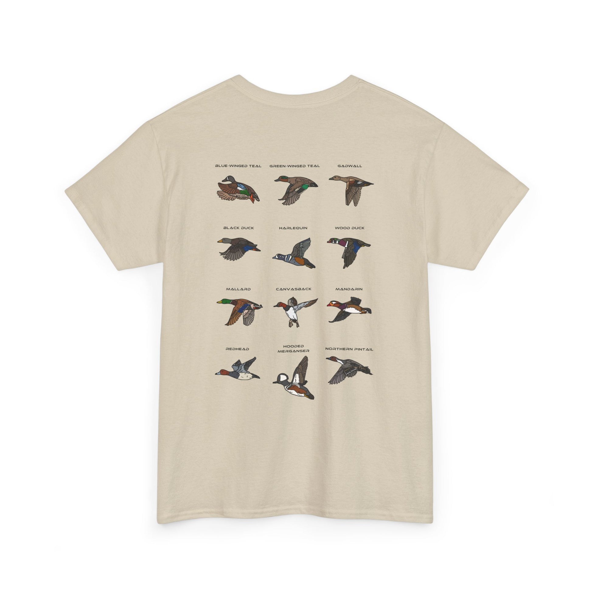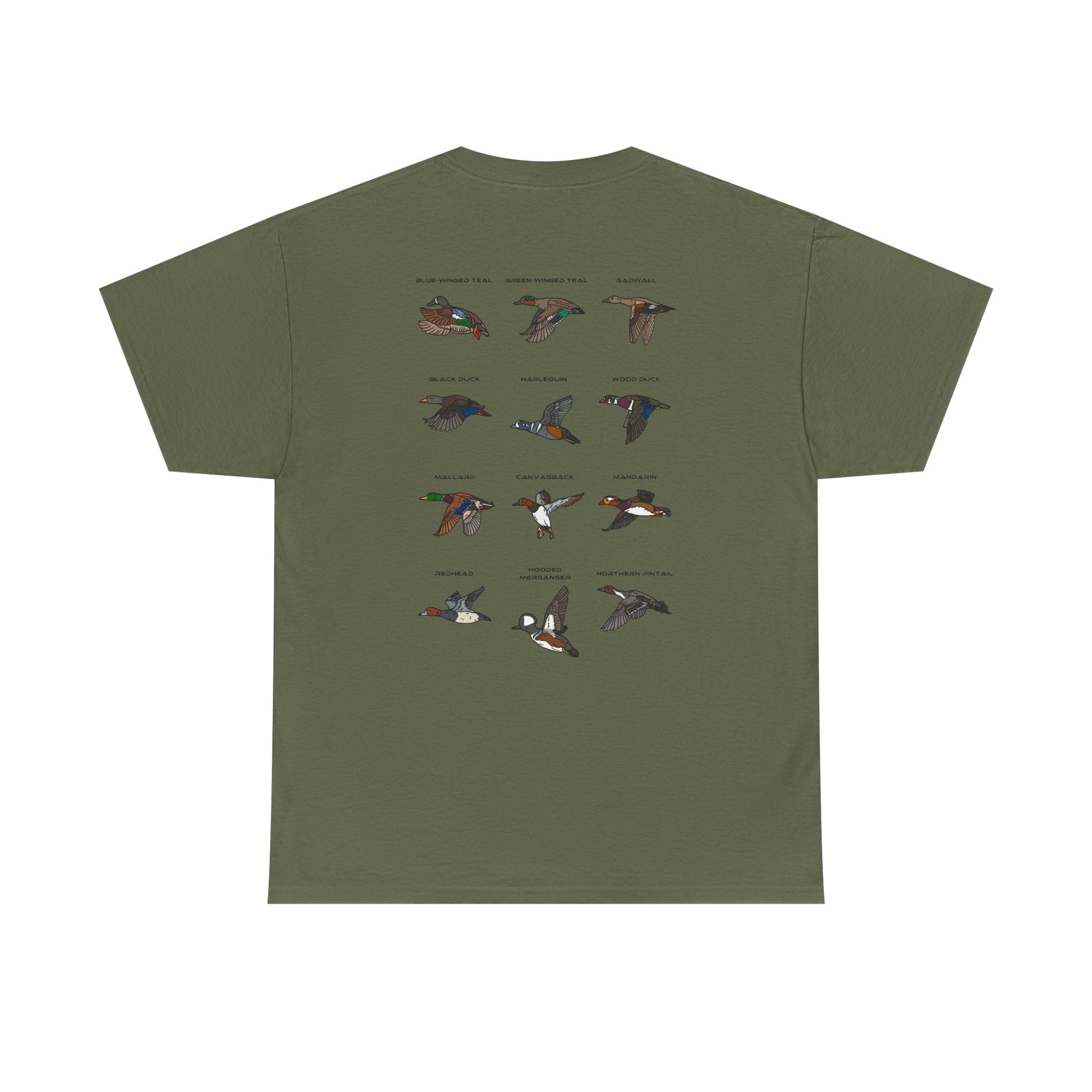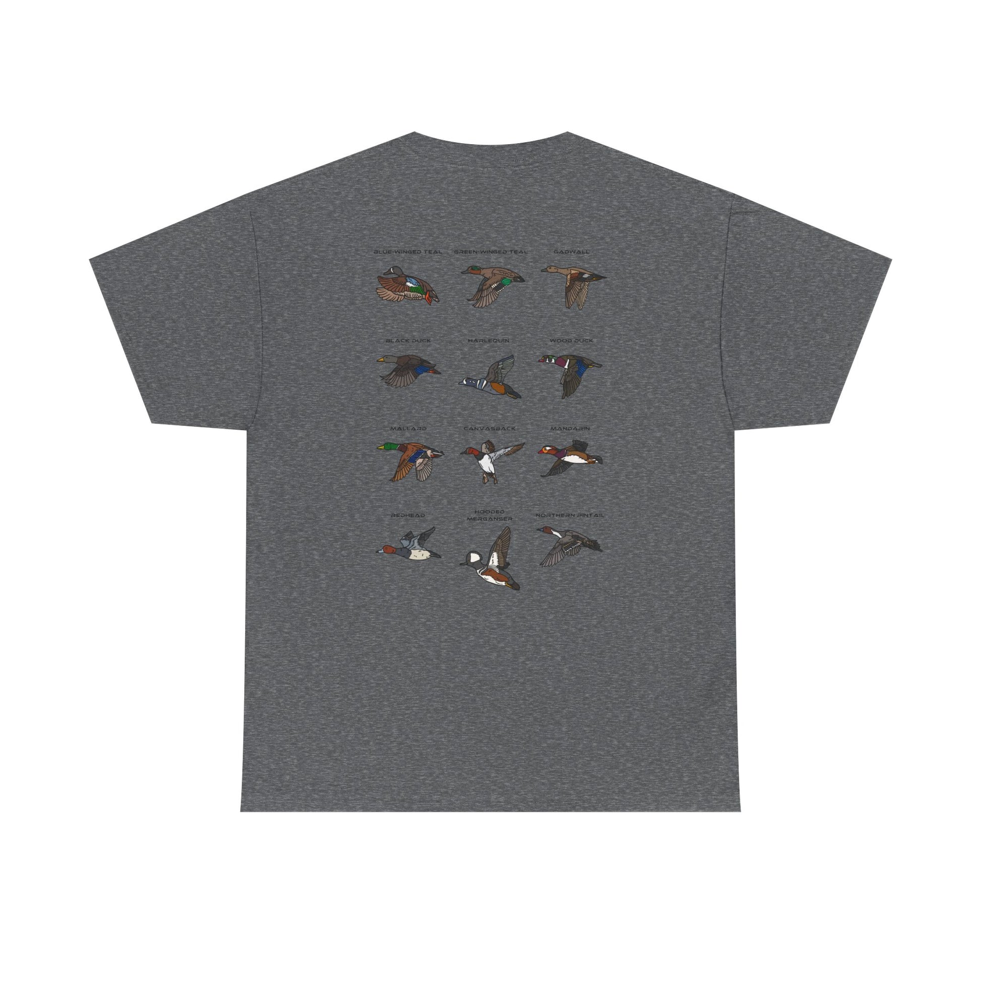 With Southern Shot Outdoors logo on the front, this shirt is paired up with an outstanding graphic on the back! This shirt features a duck chart containing 12 different species of ducks! You can't miss adding this one to your cart!